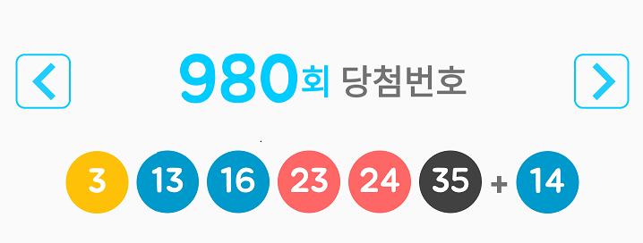 로또980회 당첨번호조회 3 13 16 23 24 35 14 1등7명 34억씩 당첨지역
